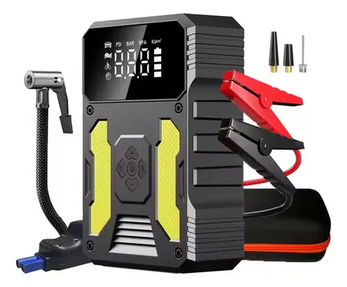 Prepárate para cualquier imprevisto en la carretera con este potente dispositivo 2 en 1 que combina compresor de aire y arrancador de emergencia. La solución ideal para inflar tus neumáticos donde sea y arrancar tu vehÃculo en segundos cuando la baterÃa falla.